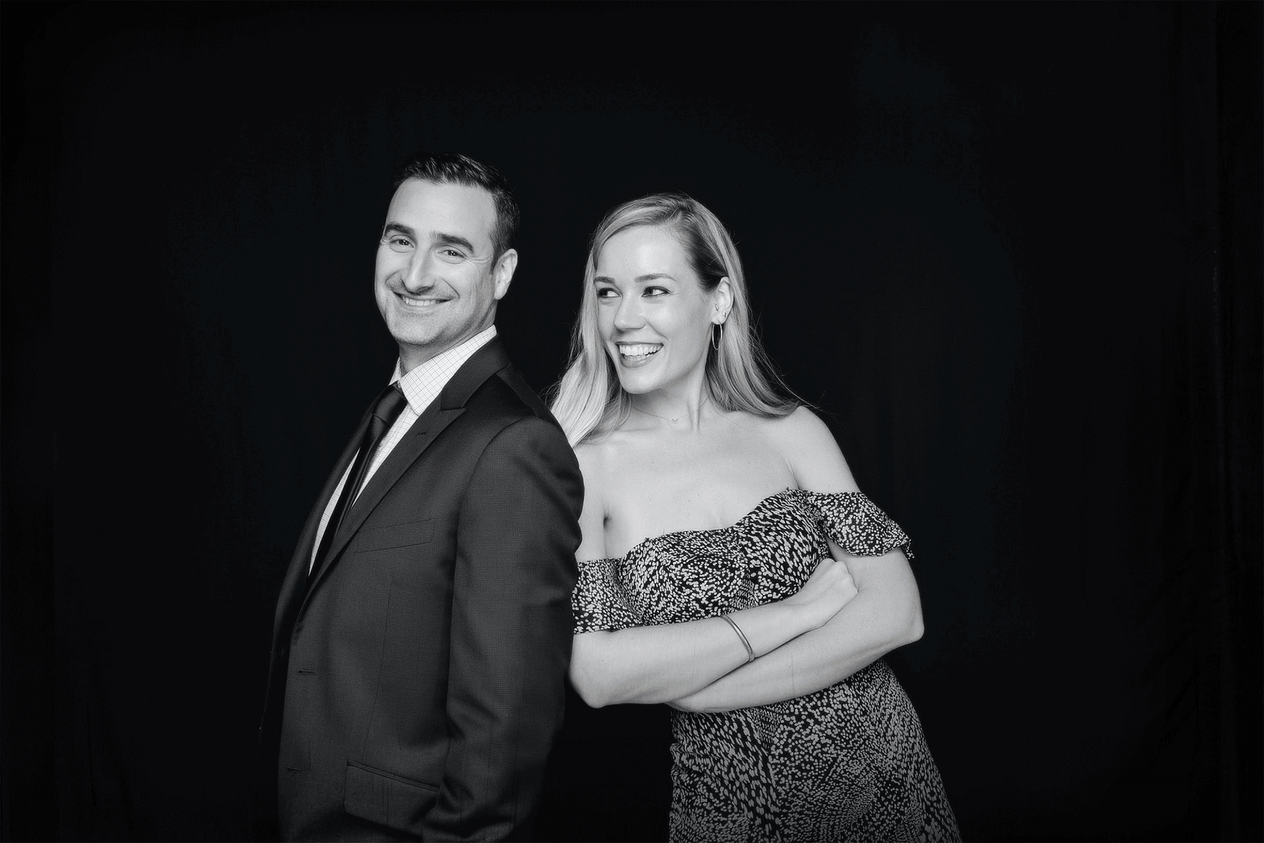 Equipment: 2 Nikon D800 cameras, Nikkor 24-70mm F 2.8 lens, Profoto strobes, beauty dish, 2 strip banks, social media kiosk, printer, wind machine, edit bay, video hub, router, mobile hotspot, PA system & headsets, 2 iPads for guest sign-in, custom background support system and side panels, 10’ x 10’ classic black background with textured overlays and side panels