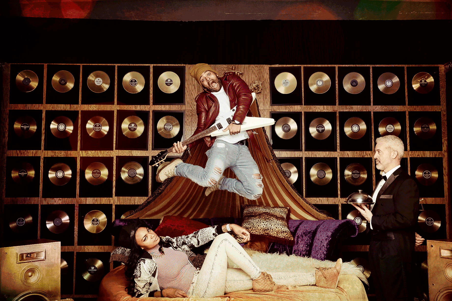 We collaborated with Mirrorball to create a one-of-a-kind portrait experience set: a rock star suite complete with gold record plaques, shag rug, speakers, amplifiers and guitars. We also curated an assortment of costumes, wigs, accessories and props so attendees could really play up the vibe.